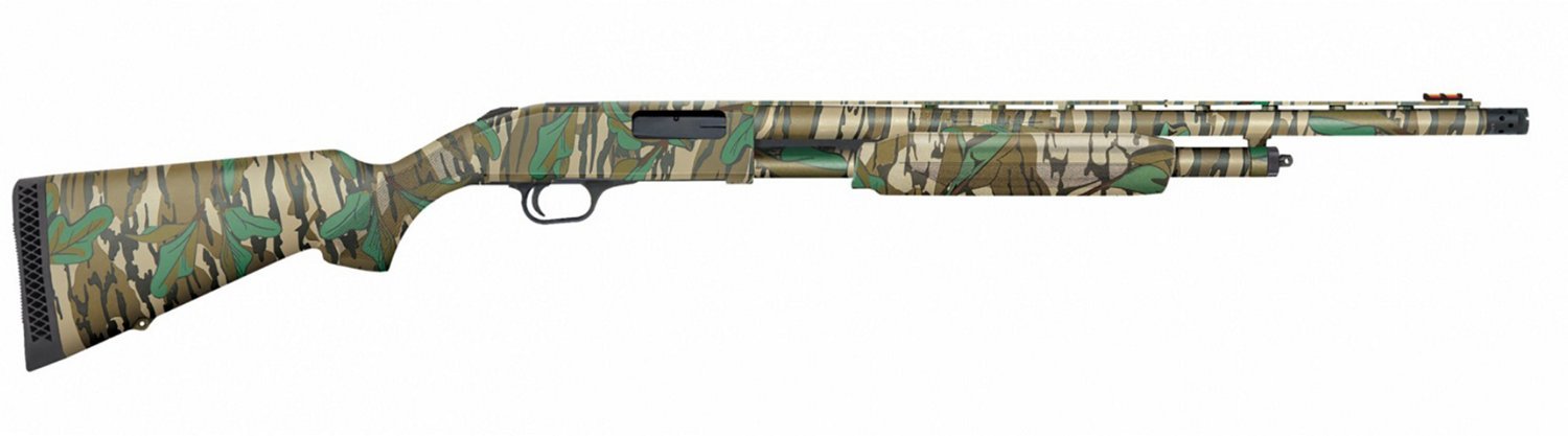 Practice your shooting skills with the Mossberg 500 Turkey 20 Gauge Pump Shotgun. This weapon features a pump action with a 5+1 firing capacity, as well as a 22-inch barrel length. This shotgun also includes a Mossy Oak Greenleaf camo stock and adjustable, fiber optic sights.